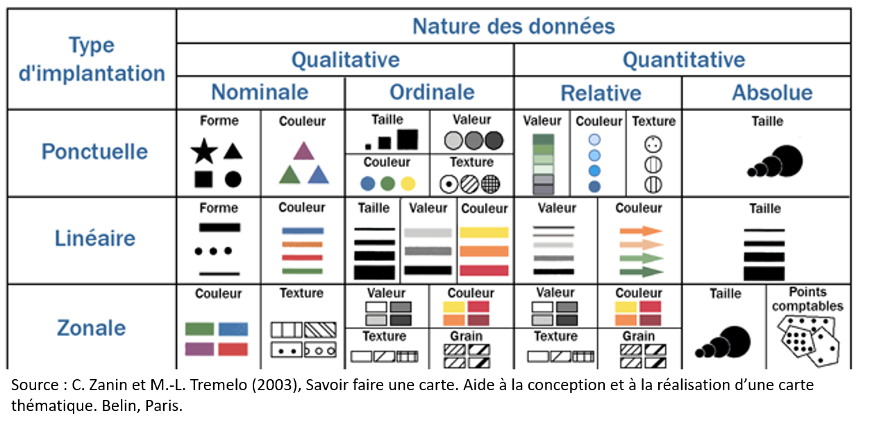 Les propriétés des variables visuelles sont au nombre de 4 :