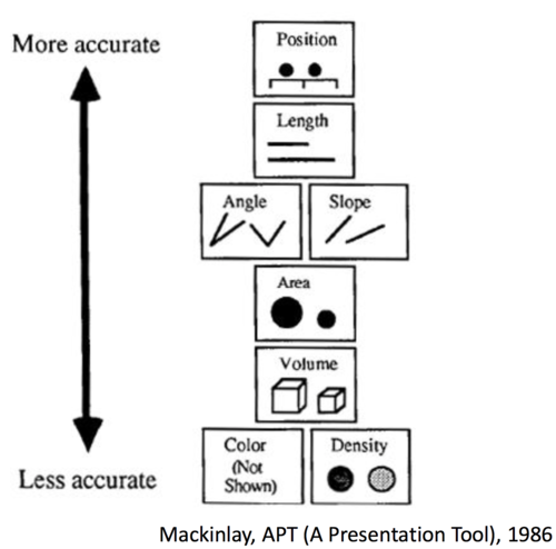 “Les critères d’efficacité permettent de déterminer lequel de ces langages graphiques [qui sont expressifs], dans une situation donnée, est le plus efficace pour exploiter les capacités du support de sortie et du système visuel humain. - Mackinlay, 1986